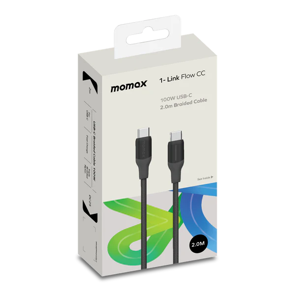 MOMAX 1-Link Flow 100W USB-C TO USB-C CABLE 2M (Color: BLACK)