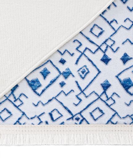 Koza Halı Maze Flux Blue Patterned Plush Carpet 7451 80 x 150