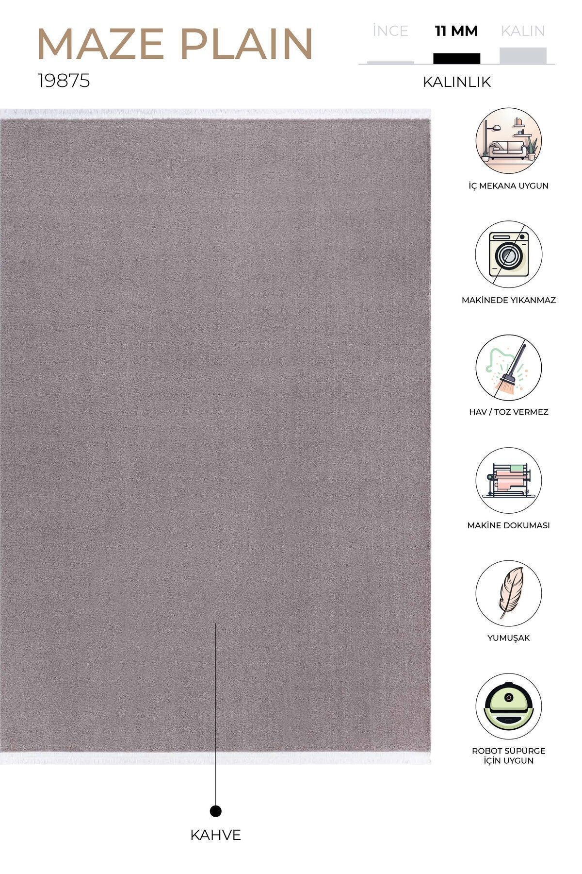 MAZE Home Office Carpet PRODUCT FEATURES Our MAZE quality is produced using polyester with 10mm pile height and fringes with Koza Carpet technology. Our Maze carpet has a soft texture and a non-slip base. You can decorate it either as a classic carpet or as a sports carpet to complete the decoration of your room. At the same time, your home or office will reflect modern lines according to your usage areas. HOW IS IT MADE? Modern Koza Carpet looms are produced on high-speed computer-controlled machine looms using polyester; It is highly stain resistant, long-lasting, durable and resistant to color fading. AREAS OF USAGE - It can be used in living room, entrance, hallway, corridor, dressing room, dining room, shooting room (Influencer), kitchen and bedroom. MAINTENANCE AND CLEANING Clean your carpet daily with a brushed vacuum cleaner. Do not wipe with chemicals such as bleach, alcohol, etc. Do not wash it yourself, wipe it with a wet cloth and ventilate. Sweep your carpet in the direction of pile. Do not leave sharp, hard, heavy objects and items placed on the carpet in the same place for a long time. When not in use, store your carpet in a rolled form, away from moisture and vertically. Do not expose it to direct sunlight. Carpet washing and cleaning should be done in accordance with the instructions given. The above reasons and stains during use exclude your carpet from the warranty. TECHNICAL INFORMATION -Polyester -10 mm pile height -Fringed -Non-shedding base -Vivid Color
