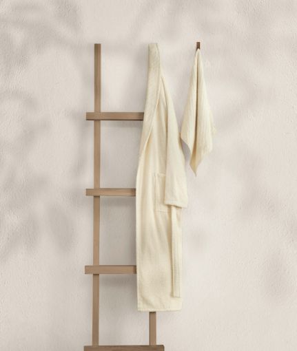 Koza Home Likya 100% Cotton Cream Dowry Bathrobe Set of 2 1 Bathrobe 1 Towel 1053A L-XL
