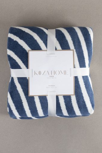 Koza Home Twin Blanket Soft Cotton Single Blanket Blue Cream 150 x 200 5031A Single