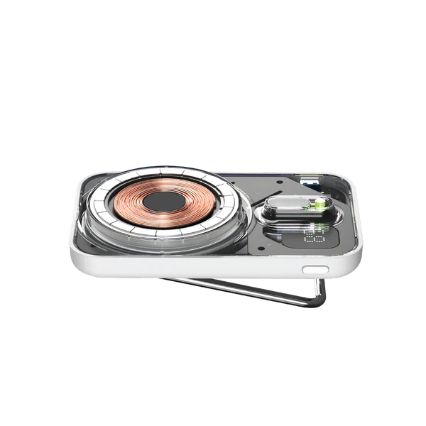 The MOMAX 1-POWER FLOW MAGNETIC POWER BANK 5000mAh offers a sleek, modern solution for wireless charging on the go. Designed with portability and functionality in mind, this pocket-sized power bank seamlessly snaps onto MagSafe-compatible iPhones for hassle-free wireless charging. Equipped with a transparent surface, an LED battery display, and a convenient kickstand, this power bank is a must-have for users seeking style, reliability, and versatility.